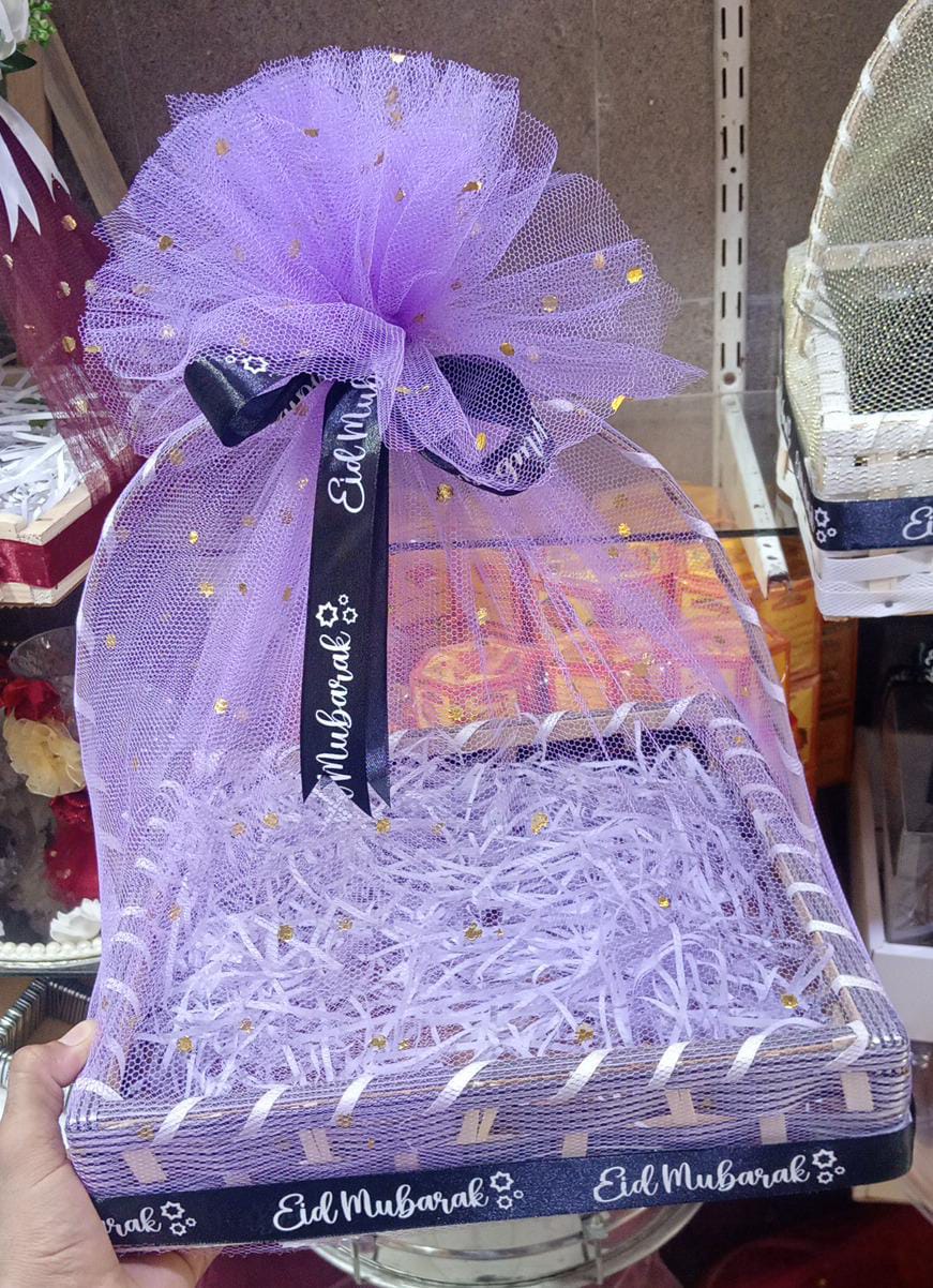 Make Your Eid Gifts Stand Out! First impressions matter, and nothing says “Eid Mubarak” better than a beautifully presented gift. Our Lavender Sparkle Gift Basket is designed to give your presents a luxurious and professional look.